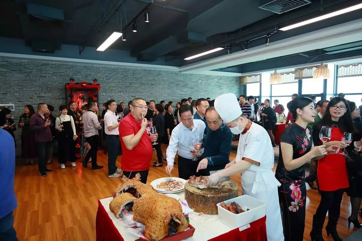 现场宾客共同交流,品尝美酒佳肴;